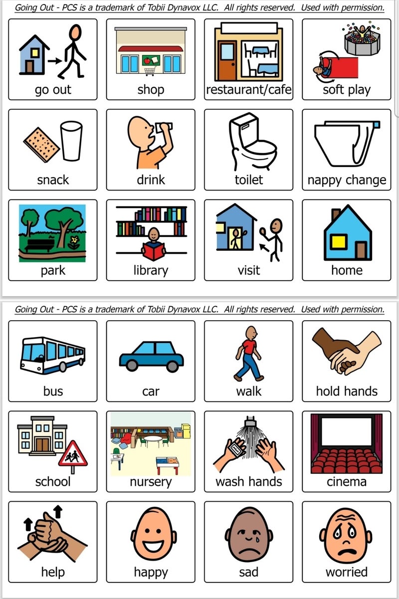 Communication cards can help children communicate their wants and needs but also aid their understanding of what's happening. Here are some Boardmaker communication cards to help while out and about. You could cut them up and put them on a lanyard for easy access or put them into a folder using Velcro. Click the download for the free pdf printable version.